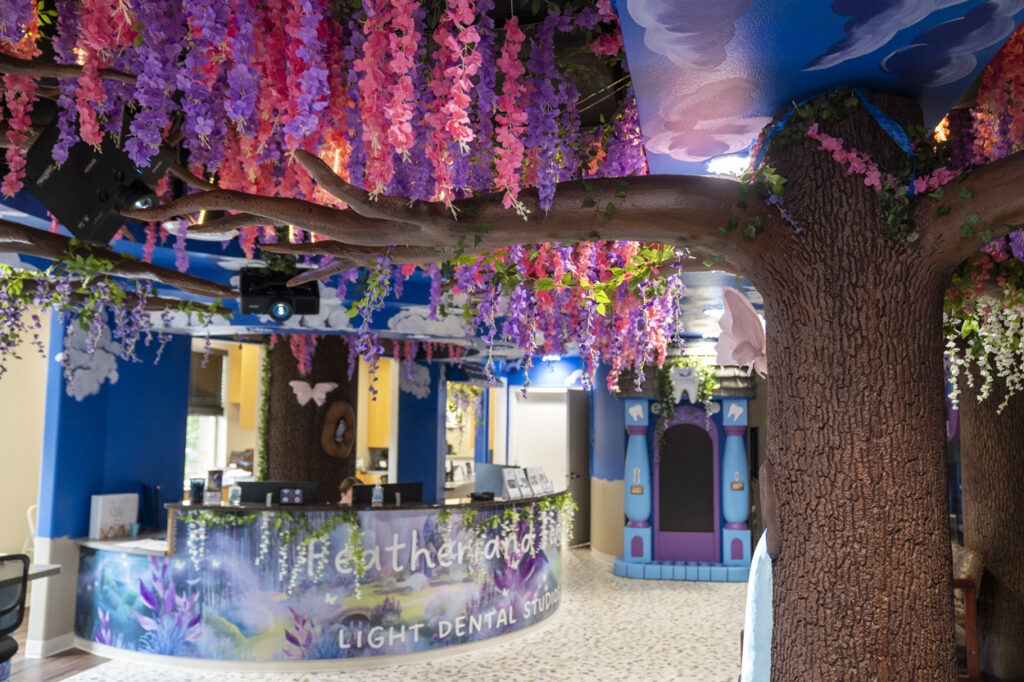 A: We are preparing for our grand opening of “Featherland Forest”, home of Lumi the Tooth Fairy in Puyallup, Washington! This is our new, state-of-the-art, interactive pediatric and orthodontic department. This space has been designed for children and families to come and play before and after their visits. In addition, we have written a children’s book called “Lumi and the Floss Trees” that is a keepsake for our patients. It tells the story of Lumi and is also a place for families to track dental milestones and the child can bring to all their appointments and collect stickers from staff.