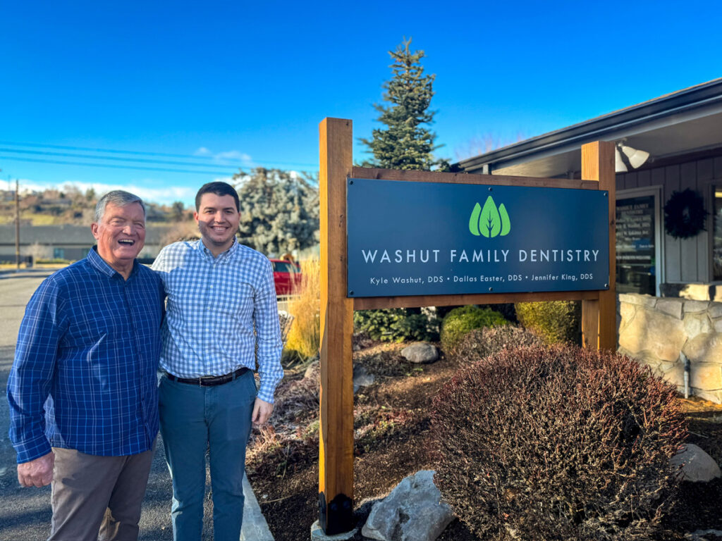 Kyle reached out to Reedy Berg for guidance. Reedy toured him through several practices in Wenatchee — including Kyle’s grandfather’s (Dick Washut’s) former office, and ultimately connected him with a residency opportunity at Union Gospel Mission in Yakima. Kyle spent a year there, training alongside multiple dentists across the Yakima Valley and serving patients in need. That experience proved invaluable, allowing him to return to the family practice with more than just what he had learned from his dad. As Kyle puts it, “You’ve got to bring something new to the table to take it to the next level.”.